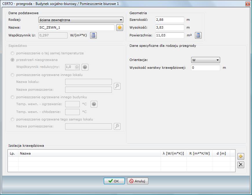 · Współczynnik redukcyjny btr – tylko jeśli wybrano sąsiedztwo „przestrzeń nieogrzewana”